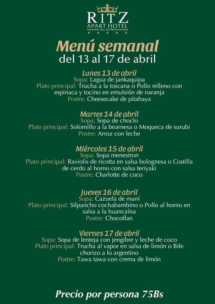 Menú Duke’s Semanal del Lunes 13 al 17 de Abril
