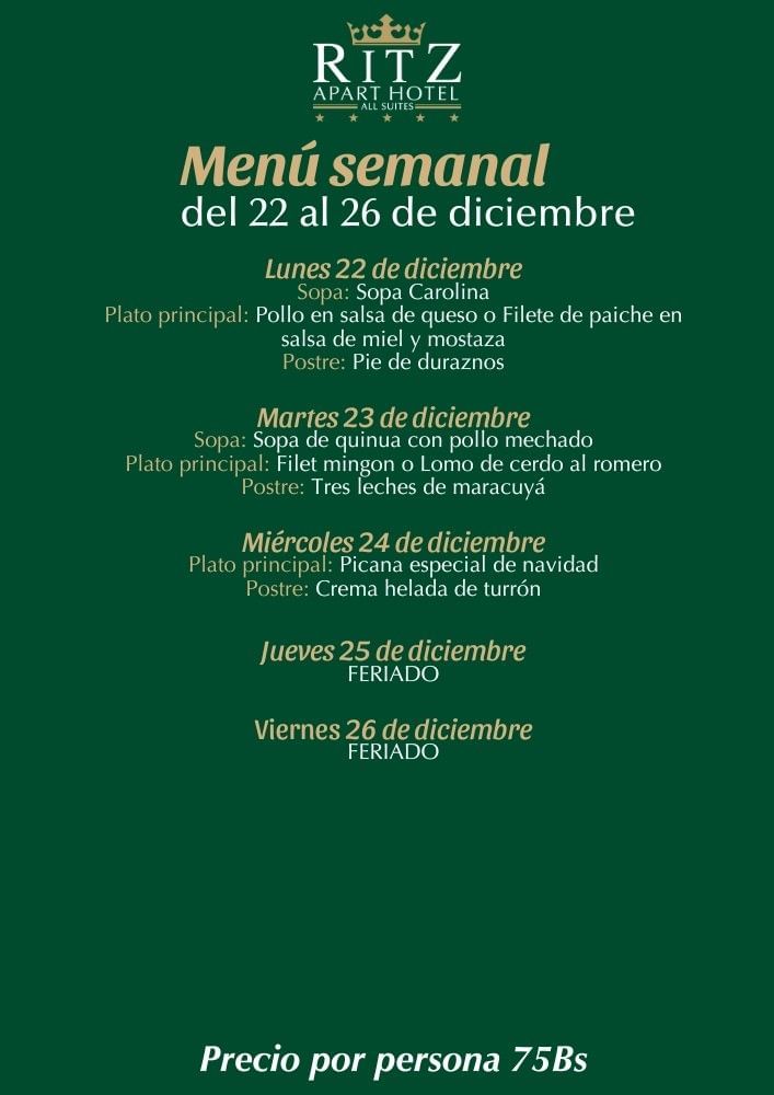 Menú Duke’s Semanal del Lunes 22 al 26 de Diciembre