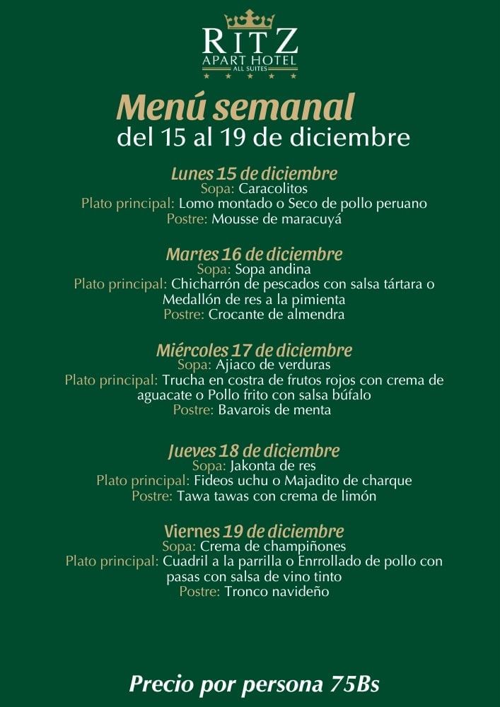 Menú Duke’s Semanal del Lunes 15 al 19 de Diciembre